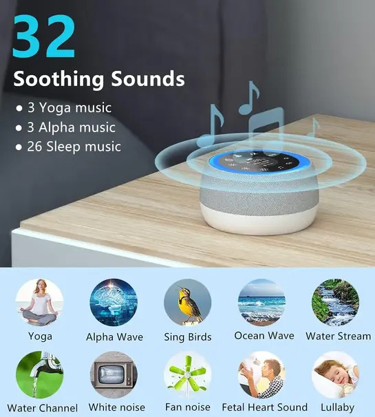 As the sound fills the room, it creates a stable audio layer that feels natural and unobtrusive. This steady backdrop can make it easier to relax, concentrate, or maintain a calm atmosphere throughout the day or night. Whether used during work, rest, or quiet time, the device operates continuously to support a more balanced sound environment.
