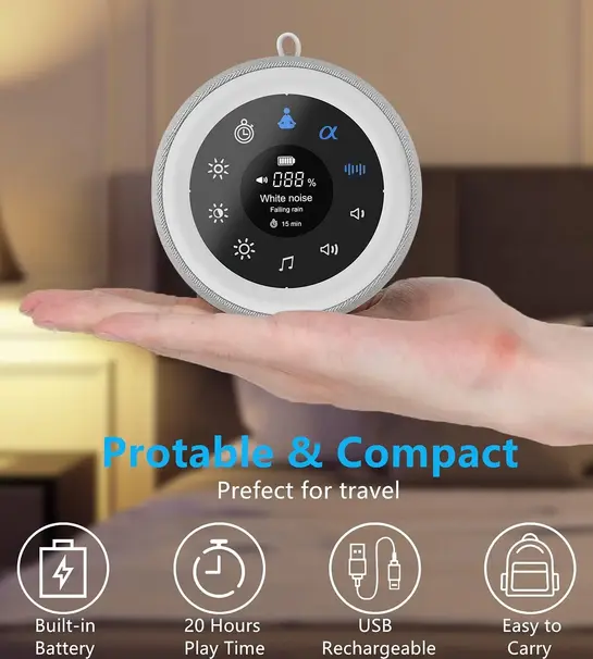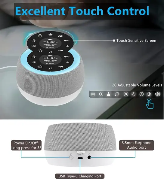 With a minimal design and intuitive controls, it fits seamlessly into any space. Place it on a nightstand, desk, or shelf and adjust the sound level to match your preference.